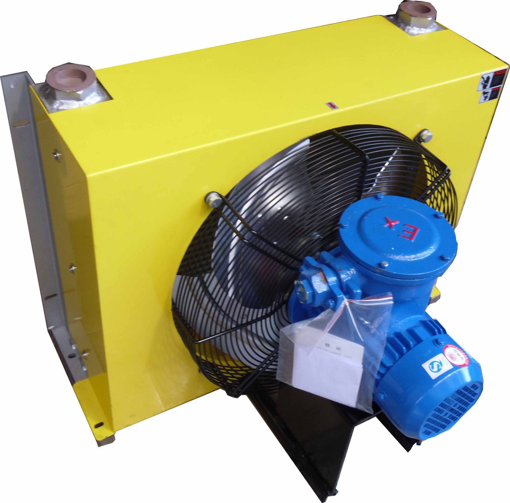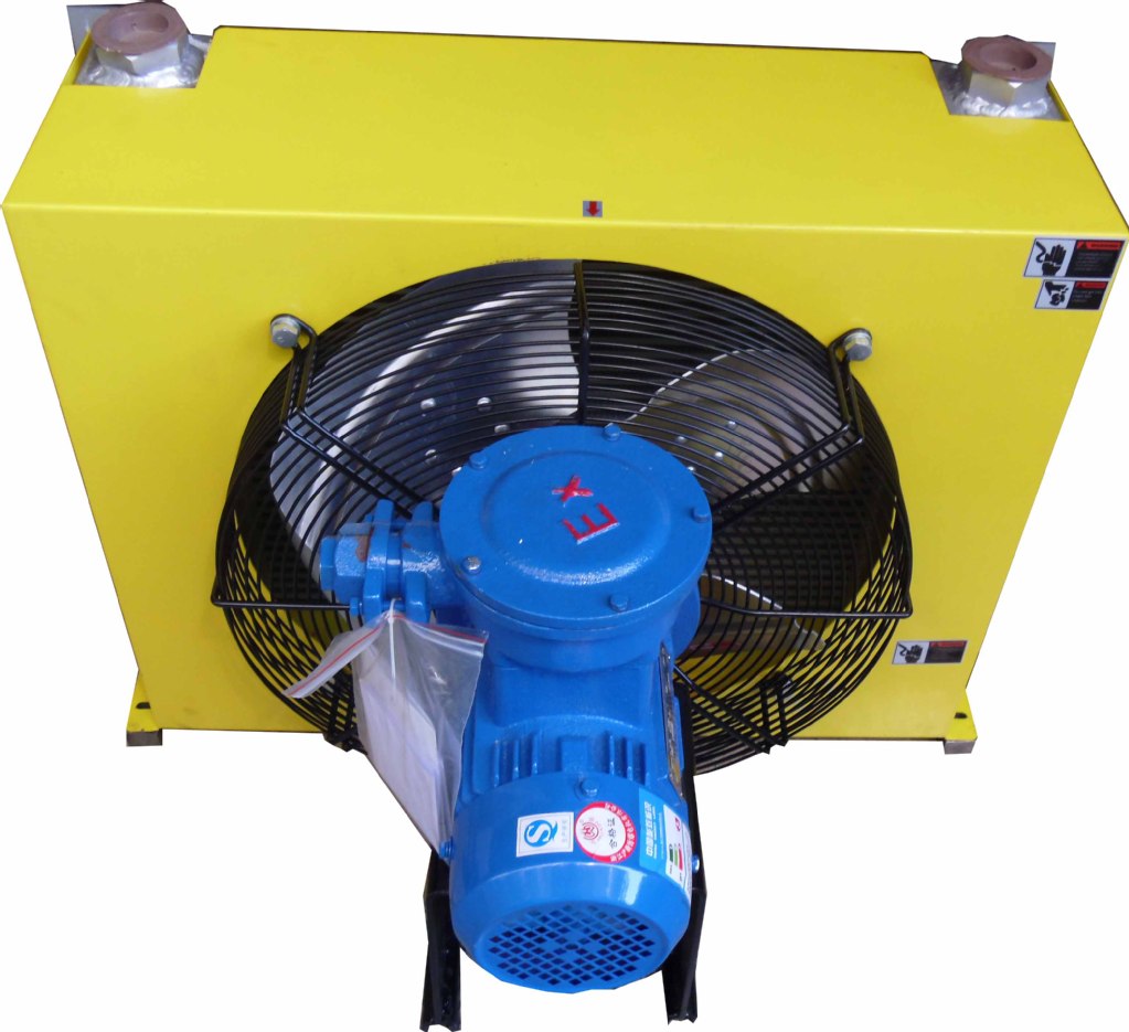 当前国内外应用日益广泛的的风冷却器,是采用导热性能佳的铝合金为材料,流体通道和风通道为先进的板翅式结构,芯体采用真空钎焊而成,其流体通道设置内翅片。与传统的铜管式相比,单位体积热交换面积大为提高,是传统铜管式结构的10-20倍,换热效率尤佳。常用作液压传动系统的辅件,对液压油进行冷却,以获得液压油正常的工作温度(范围),提高液压系统工作的稳定性和零部件的使用寿命