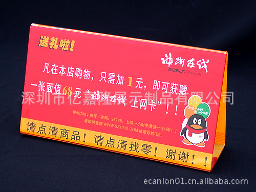有机玻璃制品具有透明的质感、有无色透明`有色透明`及不透明颜色板,高强度、不易破碎、安全无毒、不易老化、色泽鲜艳柔和、永不褪色等特点。为各行业最佳促销品和广告展示品。