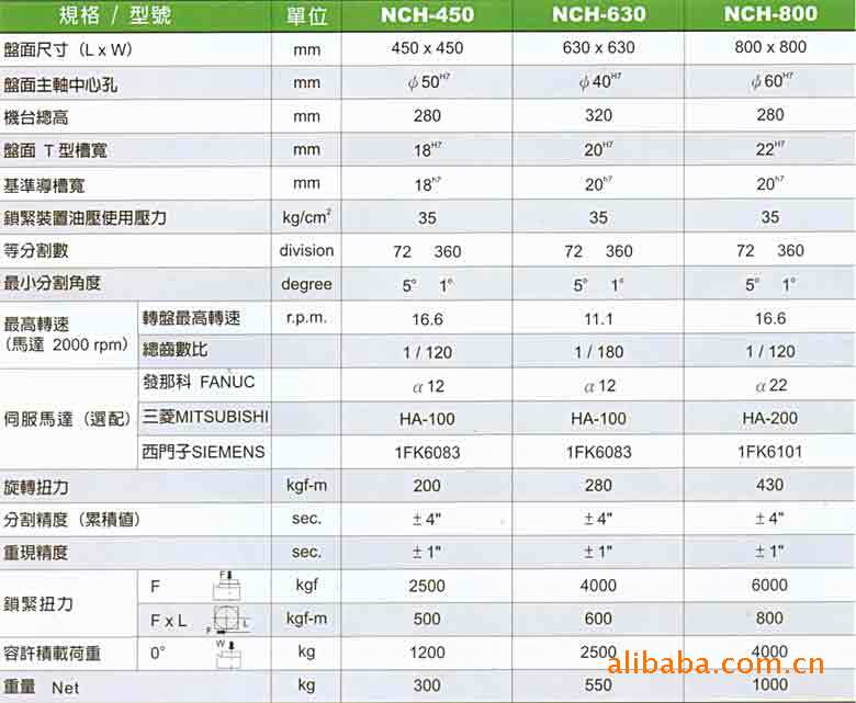 采用精密三片式齿形离合器,定位精度高,盘面不会上升.双导程涡轮组传动定位时间短,可正逆转.伺服马达驱动,定位角度多,适合多样化的角度加工.强力油压锁紧方式...