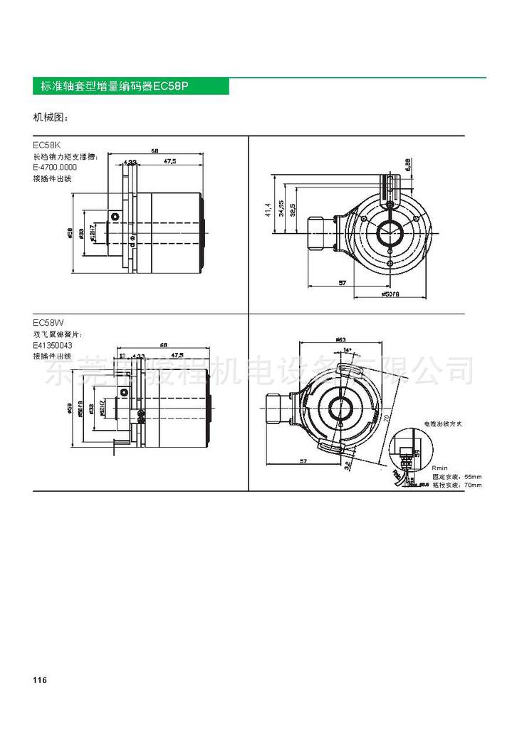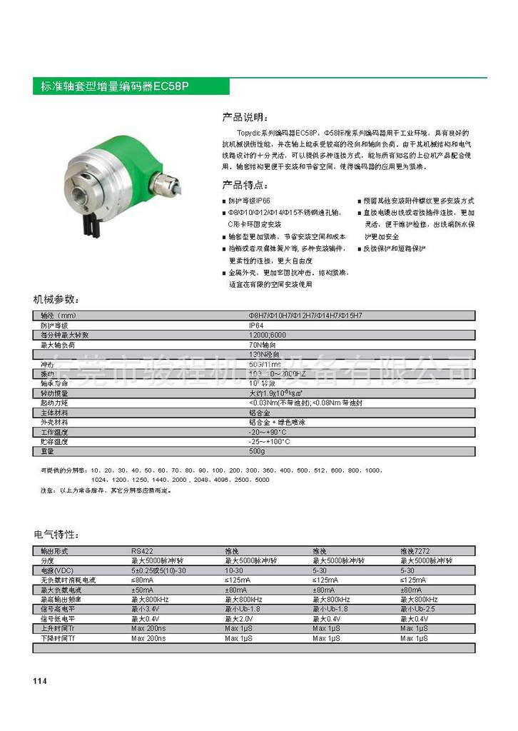 工业精品系列编码器EC58P,Ф58标准系列编码器用于工业环境,具有良好的抗机械损伤性能,并在轴上能承受较高的径向和轴向负荷。
