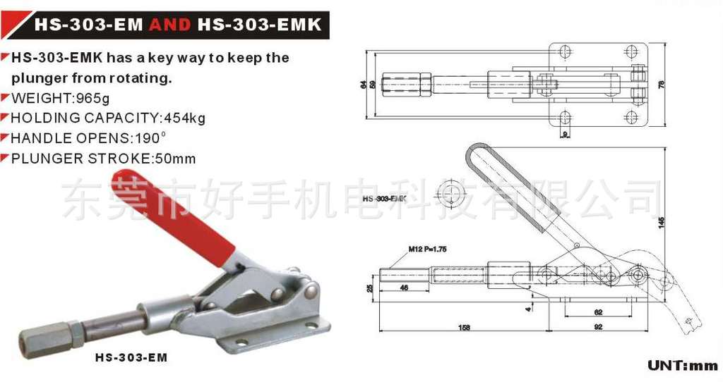 推来式快速夹钳 HS-303-EM 工装夹具系列 台湾好手品牌