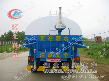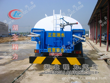 ▲洒水车 基本配置: 前冲(喷)后洒,带侧喷,罐体后带工作平台,平台上安装绿化洒水炮,洒水炮可全方位旋转,可连续调成直冲状、大雨、小雨、毛毛雨,带 安全护栏,配备全国质量评比第一名的杭州威龙大功率专用洒水泵,泵可自吸自排,安装过滤网,带消防接口,可通过消防栓进水,带自流阀 ,随车选装20米绿化卷盘,可喷洒农药,罐体金属漆。