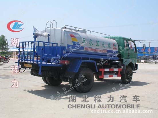 ▲洒水车 基本配置: 前冲(喷)后洒,带侧喷,罐体后带工作平台,平台上安装绿化洒水炮,洒水炮可全方位旋转,可连续调成直冲状、大雨、小雨、毛毛雨,带 安全护栏,配备全国质量评比第一名的杭州威龙大功率专用洒水泵,泵可自吸自排,安装过滤网,带消防接口,可通过消防栓进水,带自流阀 ,随车选装20米绿化卷盘,可喷洒农药,罐体金属漆。