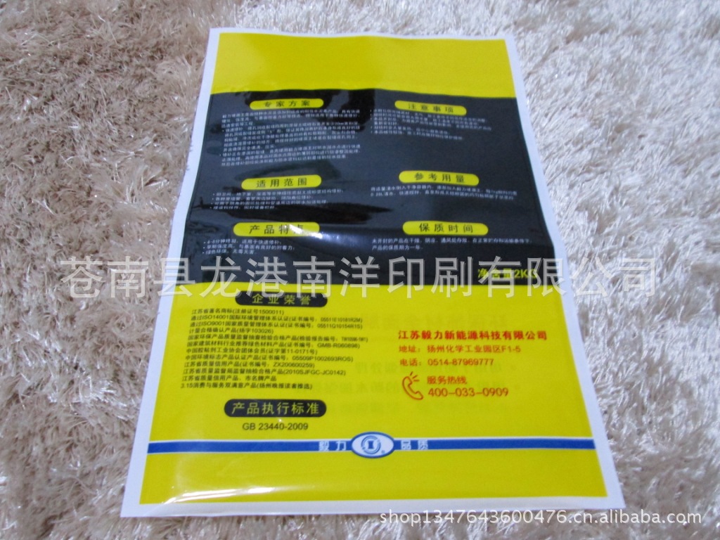 7)印刷:一面或双面普通印刷,也可以做OPP彩印,颜色按您的要求