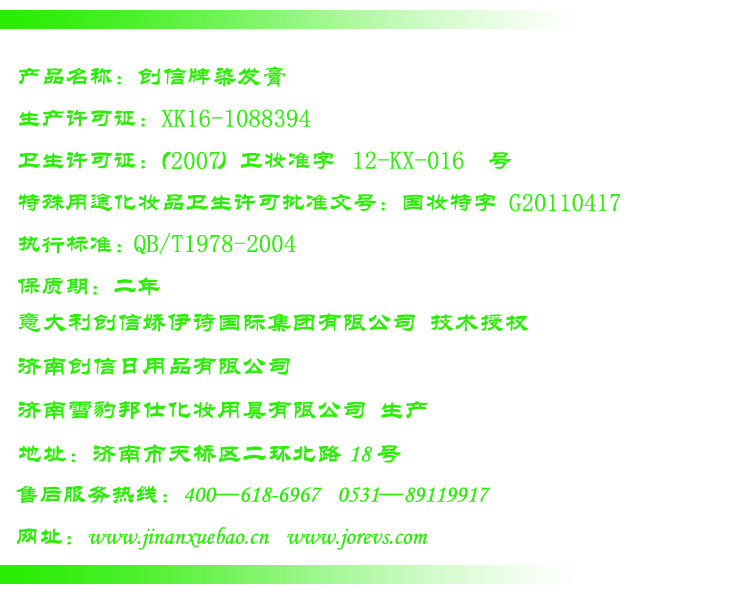 成分水、鲸腊醇、高分子氨基酸、丝蛋白、抗坏血酸(维生素C)对苯二胺、过氧化氢、香精。