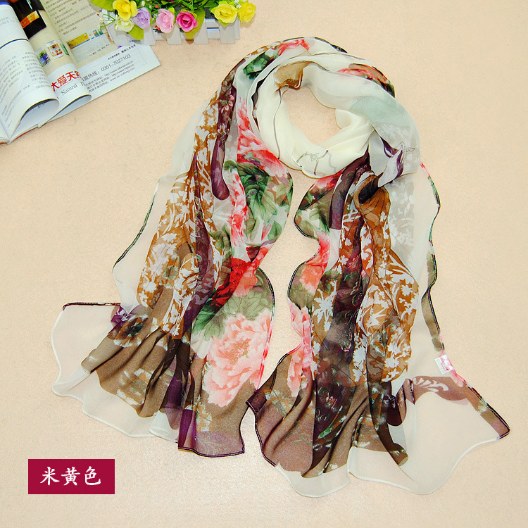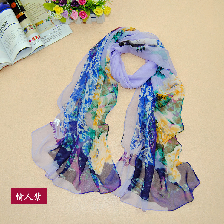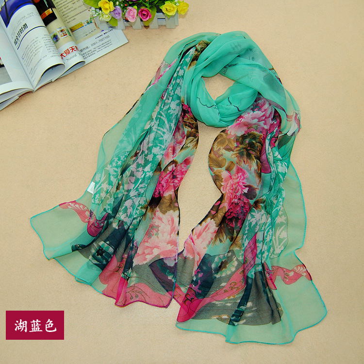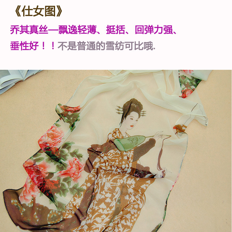 围巾女 秋冬长款雪纺乔其纱丝巾 仕女图春秋韩版披肩 批发