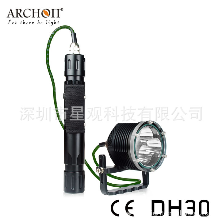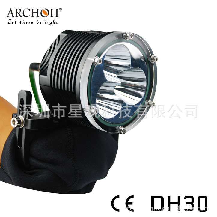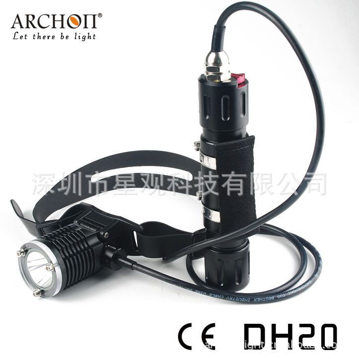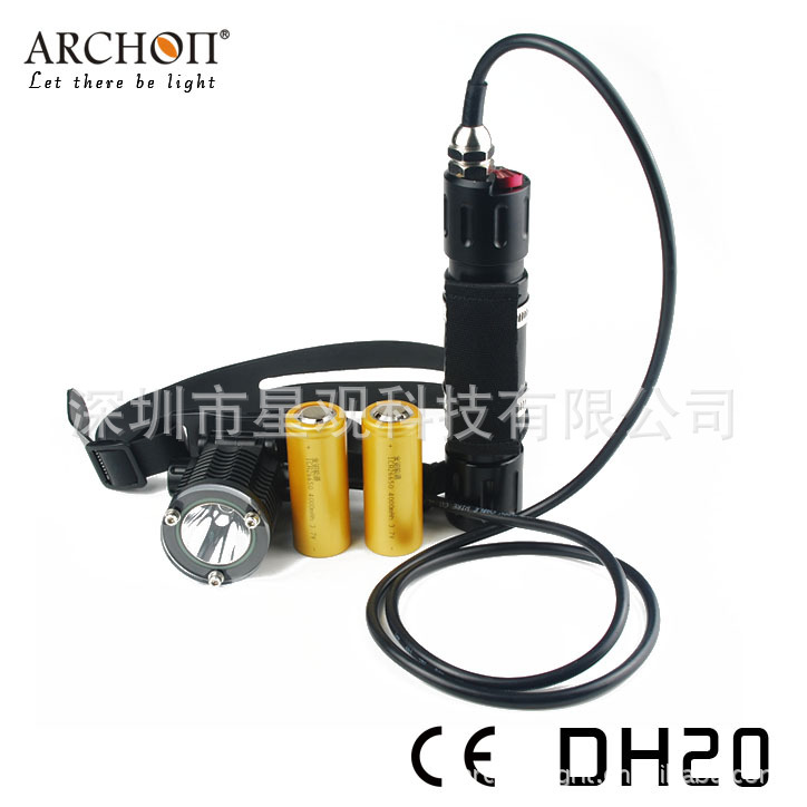 ARCHON DH25 LED Diving Light 是一款分体式潜水头灯, 灯头可80度上下调节,采用2颗26650锂充电电池,超长使用待机.最高亮度高达1000流明,8度超强完美聚光,潜水时6500K的白光反映了周围环境的真实色彩。可选择三种模式输出,最大为100%或30%或应急信号闪亮,延长照明时间,减少近距离反射影响。灯体全铝合金设计高厚度硬质氧化处理,较强的耐用性和耐久性.其成为技术潜水及休闲潜水理想的潜水装备.