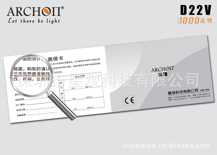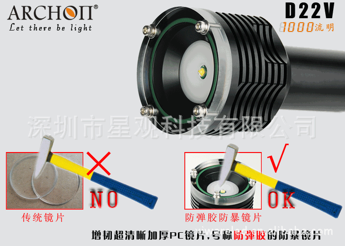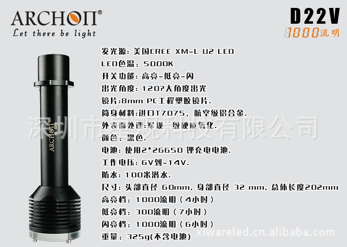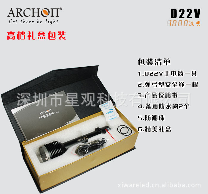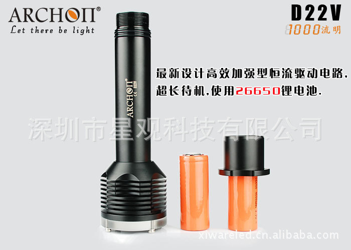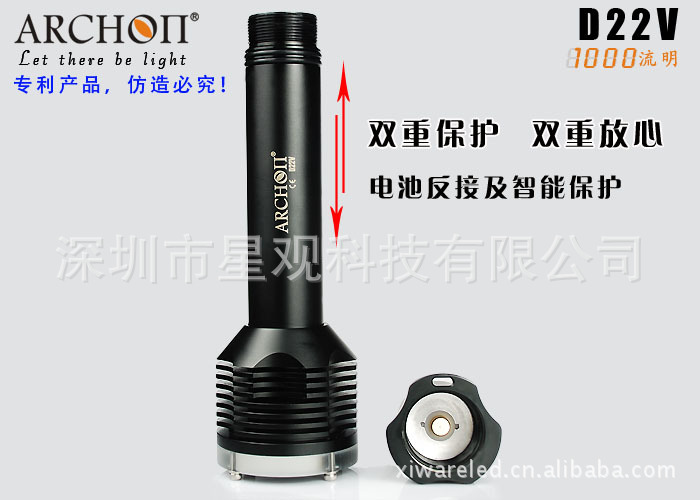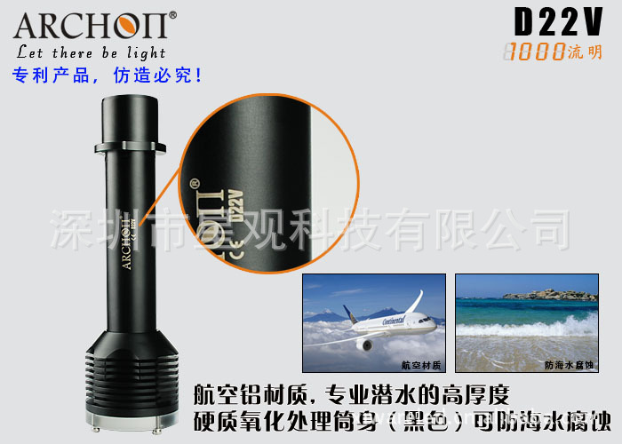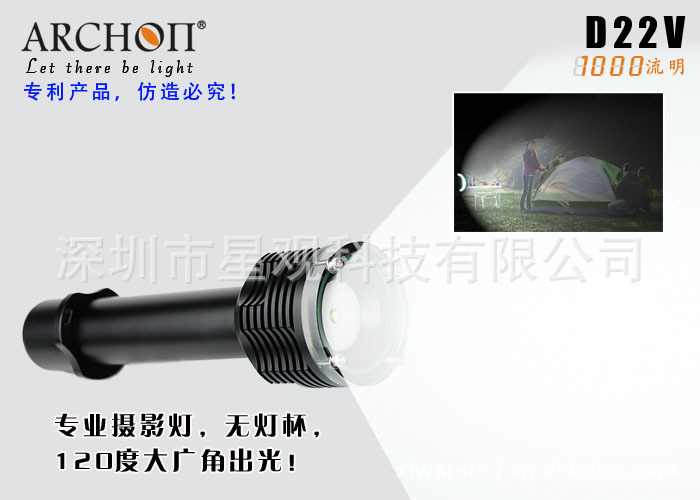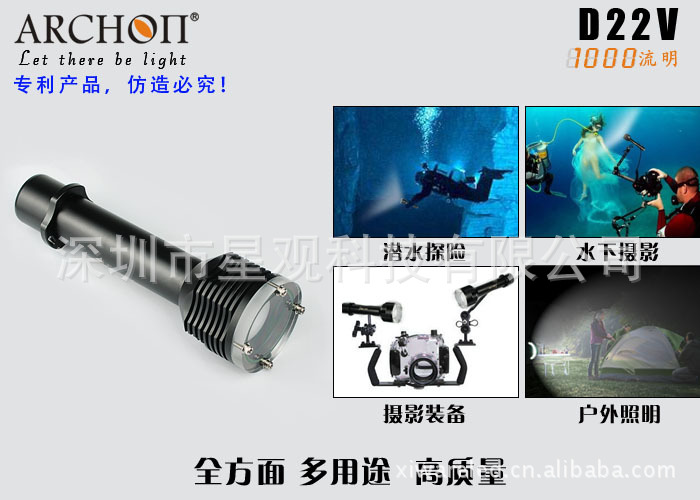 ARCHON品牌潜水灯 水下摄影录像补光灯D22V 潜水照明装备 两栖潜水用品 潜水工程用品 (捕鱼作业工具 打捞施救 水下工程 石油勘探 海洋考古/探秘 传播照明)等必备强光手电 三年质保 终身维护