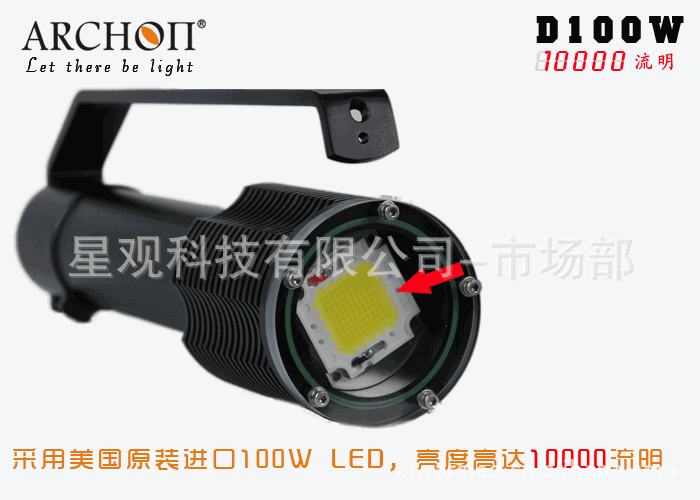 ■.专业水下摄影摄像补光灯,采用的是最新的Cree XM-L U2 芯片,亮度达到了1000流明!