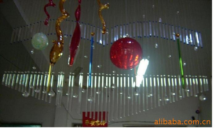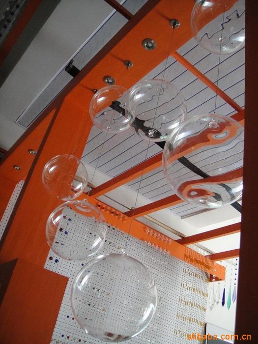 6~200毫米空心玻璃球,可以制作穿孔和挂钩,可以进行烤色加工,空心球因为重量轻,被广泛应用于大堂的顶棚装饰,