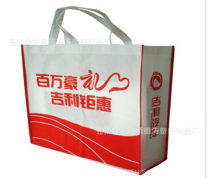 产品性能:无纺布是一种新型环保材料,具有防水、透气、柔韧、无毒、无刺激、可降解,颜色丰富多彩等特点,环保无纺布手提袋是一种绿色产品,坚韧耐用、透气性好,可重复使用,可丝印企业广告LOGO文字,使用期长。