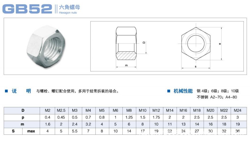 产品标准型号:DIN934/ISO4032/GB52/DIN439/DIN936/GB6170/GB6172/DIN5587产品规格:M3-M56产品强度等级:A2-70/A4-70、A2-80/A4-80产品材质:正宗进口不锈钢667、SUS200,SUS201,SUS304,SUS316 SUS304L SUS316L