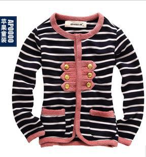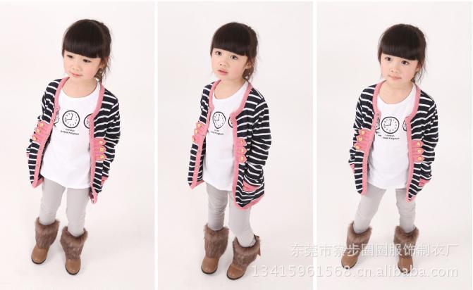 2013 新款 儿童毛衣 秋冬款 韩版 时尚休闲 撞色螺纹圆领针织开衫