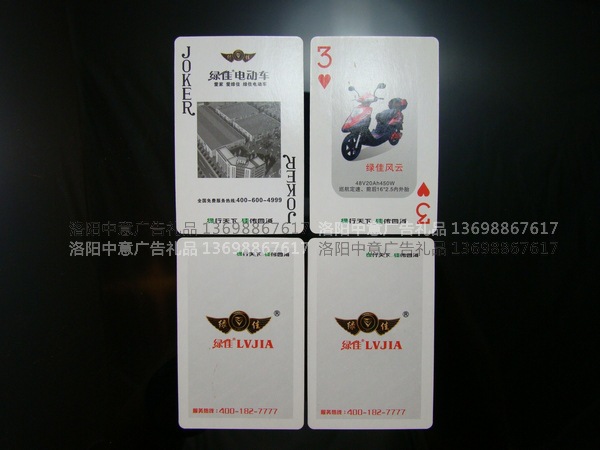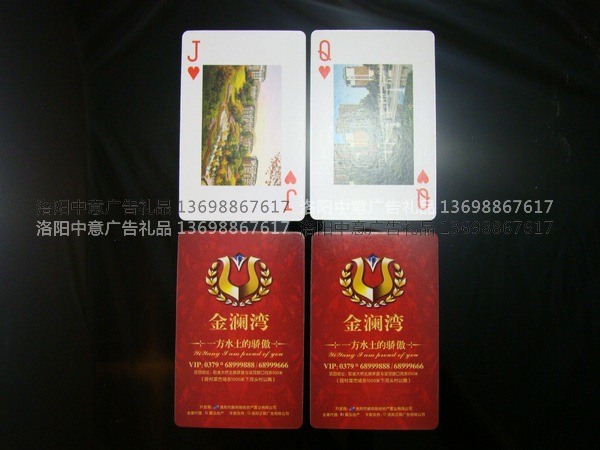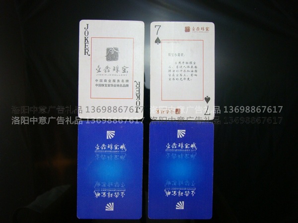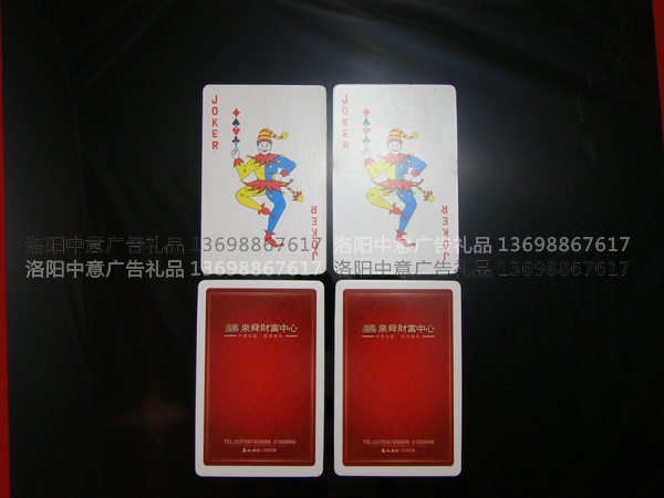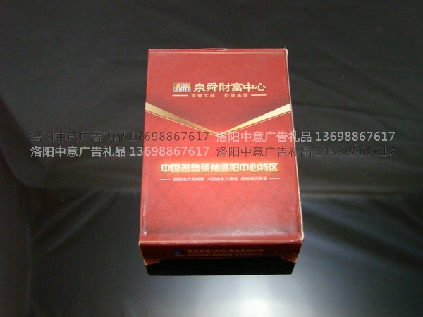 洛阳中意---豫西地区最专业礼品专业批发商,为洛阳多家企事业单位提供优质服务,专注于礼品的开发、定做、生产和批发销售......洛阳中意礼品一直以来专注于广告扑克牌的设计与定做。洛阳中意促销利器礼品专家 致力于为你创造更多节省更多..... 现今的市场小礼品成为中小企业做宣传的最爱。您可以印制一批广告扑克,把您的企业形象和服务印制在扑克牌的正反面,以扑克来替代宣传材料,由于扑克牌超广泛的群众基础、明显的复用特征、易于携带和保存,加上它所生产的成本比较低,它在媒体宣传方面越来越崭露头角。