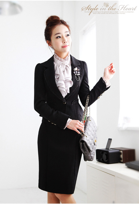 新款 OL至爱 配胸花 黑色职业套装 上下2件 上衣80元 S6850