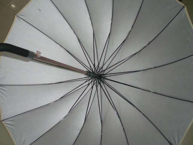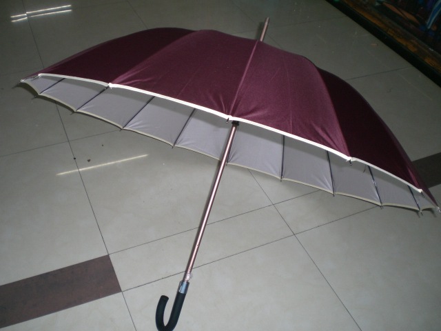 16K*65公分直杆伞,铝中棒纤维伞架,橡胶漆塑料弯柄。超强防紫外线碰织银胶布料。米色包边,做工精致。每件48个,五色混装(枣红,藏青,黑色,咖啡,墨绿)。