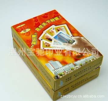 温州宝驰印业有限公司是扑克、PVC扑克、对联、福字、红包、无纺布袋子等产品专业生产加工的私营有限责任公司,公司总部设在苍南县龙港镇龙翔路868-878号,公司拥有完整、科学的质量管理体系 本公司是一家集现代化、规模化、品牌化为一体的印刷企业,引进罗兰700,海德堡、全自动上光机自动理牌机等先进设备,采用优质环保材质。精湛的生产工艺生产各种 中、扑克印刷。欢迎各界朋友莅临温州宝驰印业有限公司参观、指导和业务洽谈。