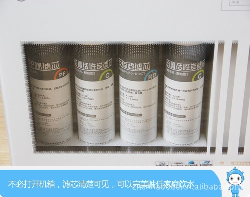 3)RO反渗透膜滤芯:美国陶氏RO反渗透膜片,有效面积大幅增加, 精确过滤水中细菌、水垢、重金属等有害物质。