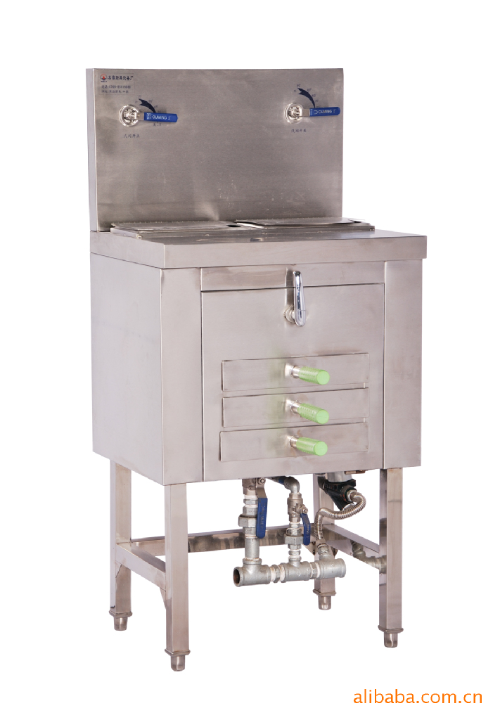 1、结合餐厅实际操作模式,根据其工作规律及结构,在产品柜门上设计了三格蒸肠粉盆,整套门板可完全打开,便于柜体内部的清洁工作