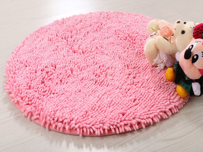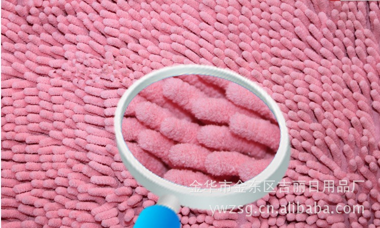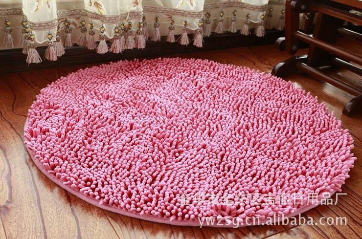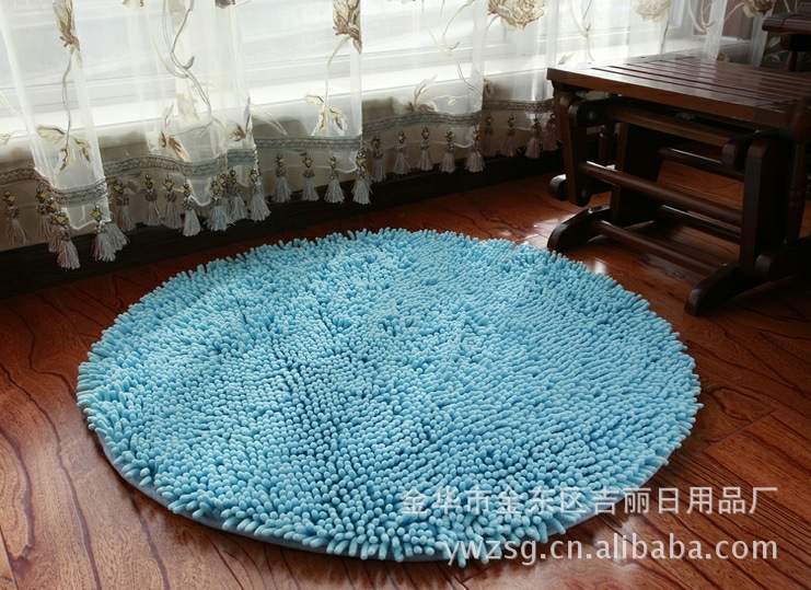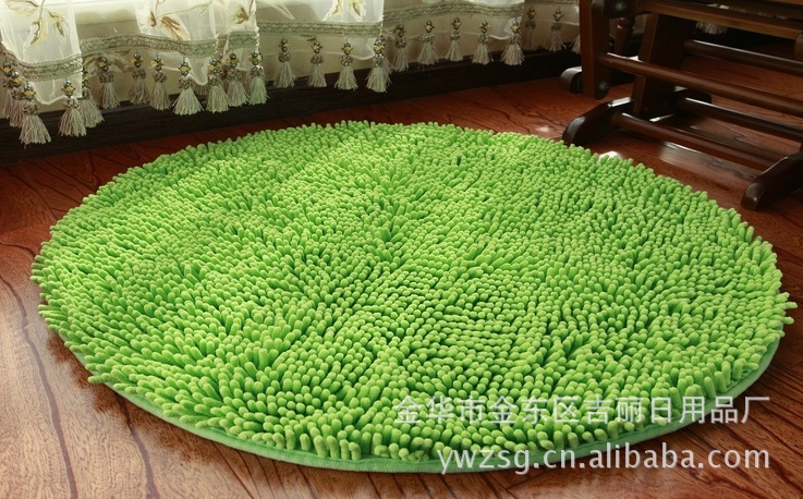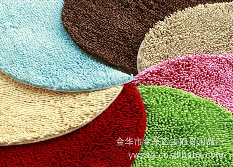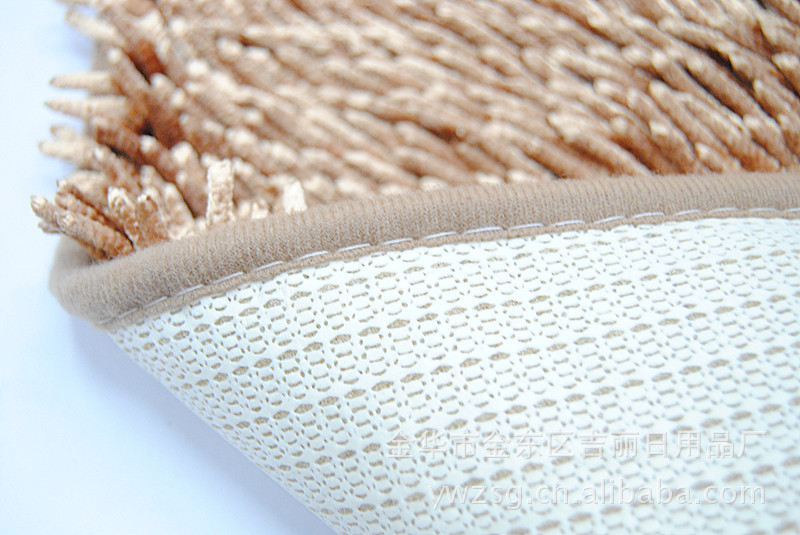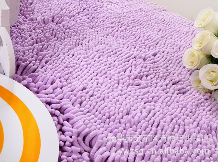 【制作工艺】采用雪尼尔纱线簇绒成整卷乳白色的坯布,然后整体高温活性染色(高温染色的优点在于色牢度高,一般只用于内衣,而且环保,不缩水。一般染色,色牢度低,极易褪色,而且用了大量的低廉有色染剂,对身体有害)。高温活性染色之后进行机器复底,再进行裁剪和包边制作。