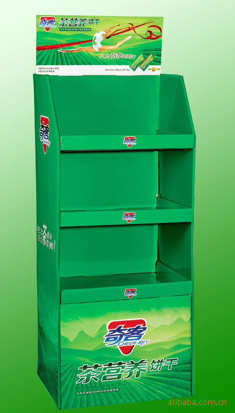 2、展示盒,纸货架全部(或主要)由印刷纸和高硬度纸板,足以承载促销商品,纸货架可承重最大120KG的重量