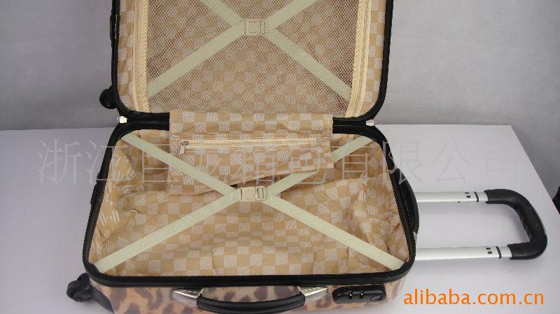 此外,在部件细节设计上突出人性化特色,采用360度无声万向轮,轻便灵活,高级防绣轮轴使箱子以久耐用,高档铝合金拉杆,该款拉杆采用特制加粗型合金铝管,轻盈坚固,全新感觉,3节式可调高度,加强承重力设计,可承重50KG以上,配合使用者不同体型。内部选用高档丝质衬布,网袋设计,分隔箱内空间,使物品更容易归类,一条X型弹性丝带,固定定物品,为您宝贵的旅行物品提供全方位保护。