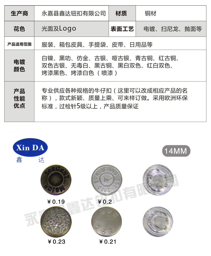 牛仔服装配件,以稳步发展,努力为国内外客户提供优质服务及物廉价美产品,信誉良好,深受客户的信赖。