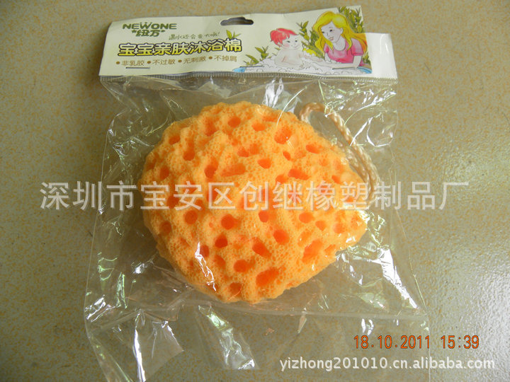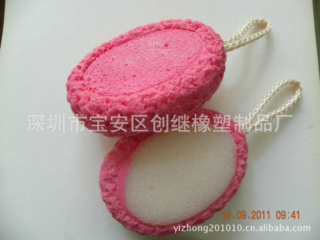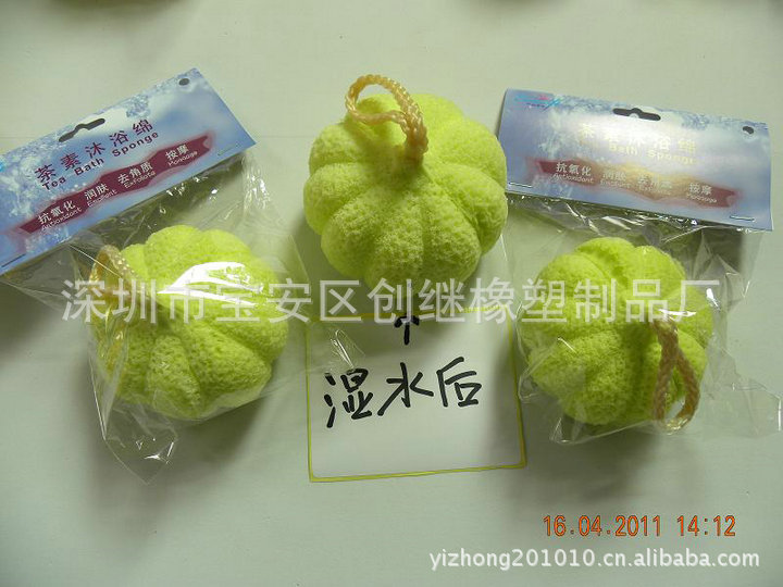 浸水后产品自然膨涨,表面加上适量的沐浴露将会产生丰富泡沫可擦洗全身,使用后清水清洗干净,又回复原形状。