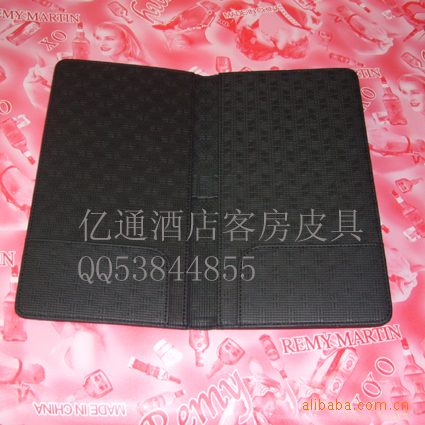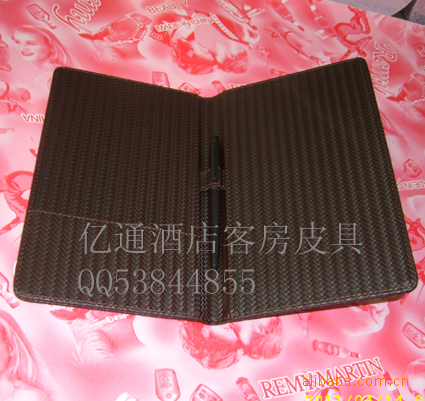 产品有:客房用的服务指南、小闹钟、茶包盒、遥控器座(套)、垃圾桶、纸巾盒、客房一次性用品盘、写字垫等,托盘、鞋篮等,大堂用的高档皮革花盆、前台大班桌垫、宣传资料架、留言册、信息座等,餐厅用的中餐菜单薄、西餐菜单夹、写字垫、收银夹等以及其它酒店皮具用品