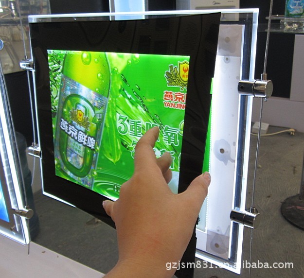 磁吸灯箱可做成超薄磁吸和水晶磁吸,单面超薄磁吸的厚度为1.6CM,双面超薄磁吸厚度3.2CM为黑边可根据客户需求来定,灯源为LED灯,节能,环保,实用,美观,易安装,换画方便.水晶磁吸与水晶灯箱做法一样,只有面板不同,面板是用磁吸.产品具有薄、亮、匀、省的特点,薄--指厚度尺寸小,亮指光源在同样功率条件下亮度高,匀--指发光面光线均匀,消除传统灯箱的顽疾“排骨现象”时尚:适用于任何商业区域及城建设施,包括商业中心、超级市场、银行、连锁经营店、饭店酒楼、快餐厅、机场、车站、地铁、码头、公交站台、电梯、室内装饰、婚纱摄影、标识牌等。