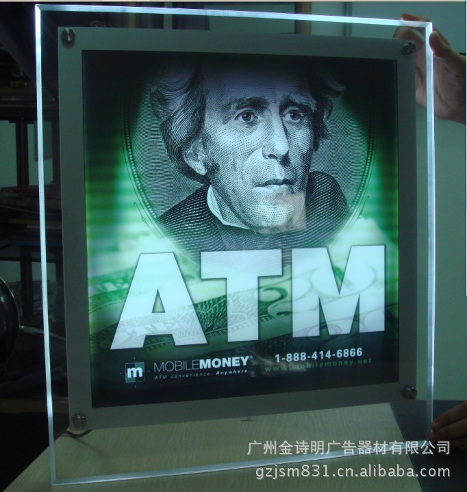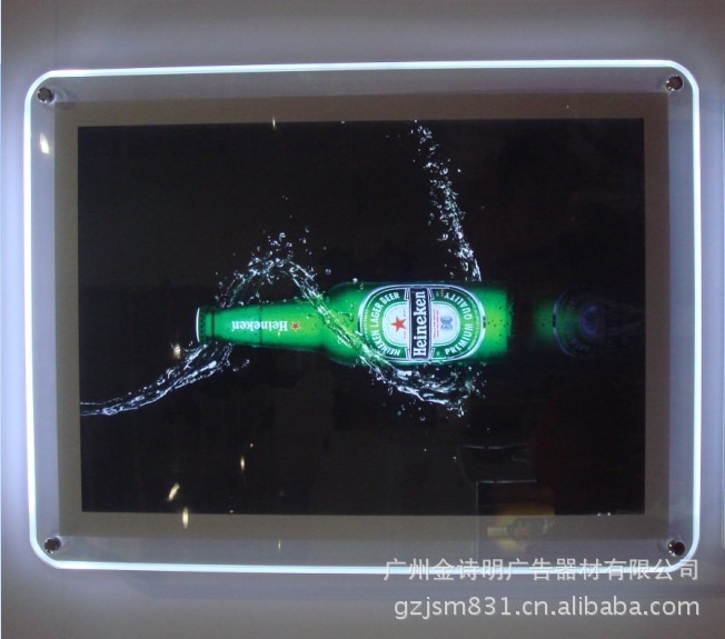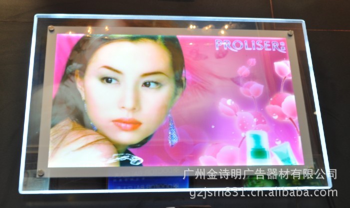 单面水晶灯箱外观优雅,厚度0.8-1CM,安全节能,更换画面方便,易安装。材料全为亚克力由面板、导光板、背板组成,光源为LED灯,LED灯的使用寿命达到50000个小时以上,灯保两年。广泛应用于商场、银行、医疗机构、写字楼、连锁店、酒店、餐厅、咖啡厅、车站、影楼、展馆、商务场所等地。可放桌面、壁挂及吊挂等多种摆放方式。