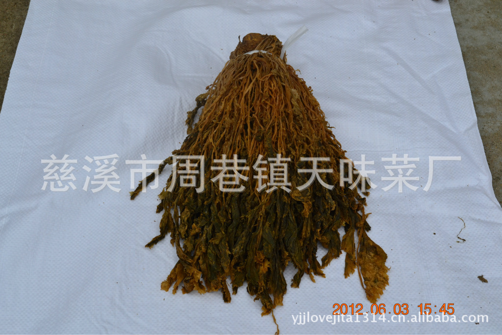形如秋萄,脆嫩味甘。这时,村妇摘下菜心(长约5寸左右),晾挂几天。待叶子变软时,放进盆里,撒上盐,用手揉搓,待渗出一些汁液时,便装入陶瓮,码放一层撒一层盐,装满后用芥菜叶或竹笋壳把瓮口封严。过了半月二十天,取出晒干,便成了色泽金黄,咸酸味甘的梅干菜。
