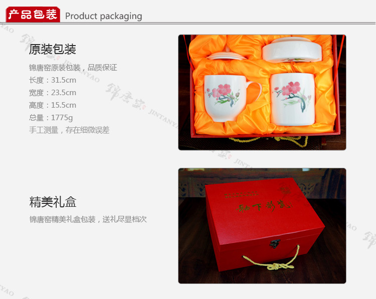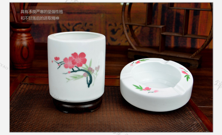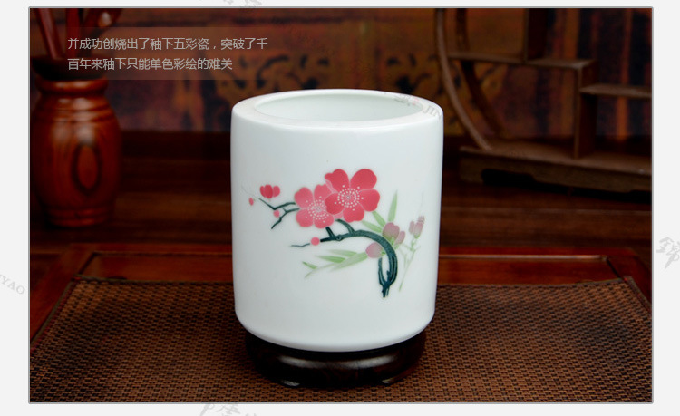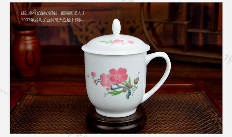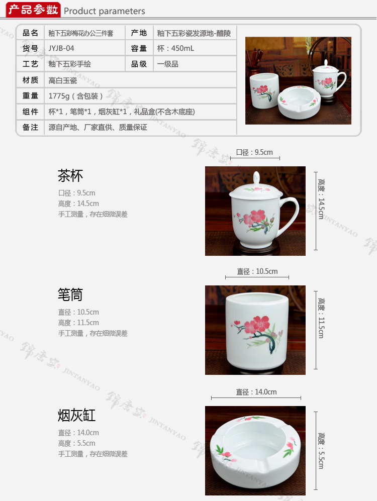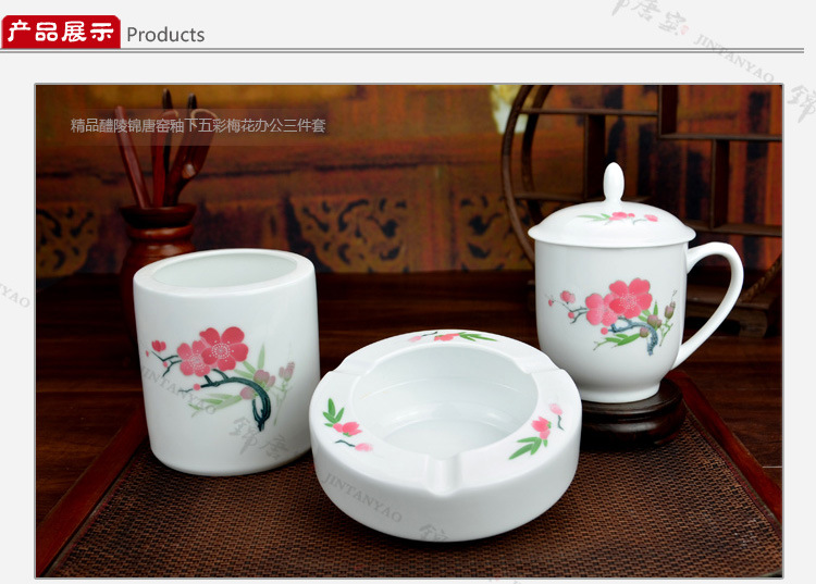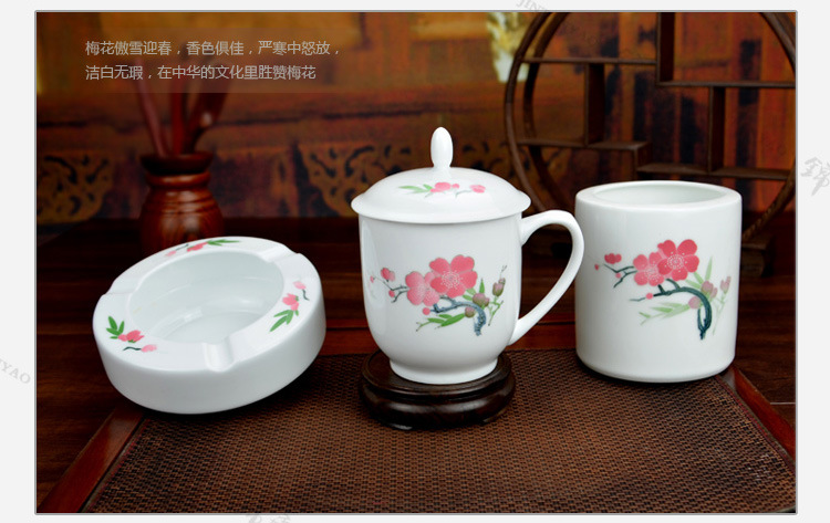 釉下五彩瓷梅花办公三件套,毛瓷杯,釉下彩办公三件套,礼品定制