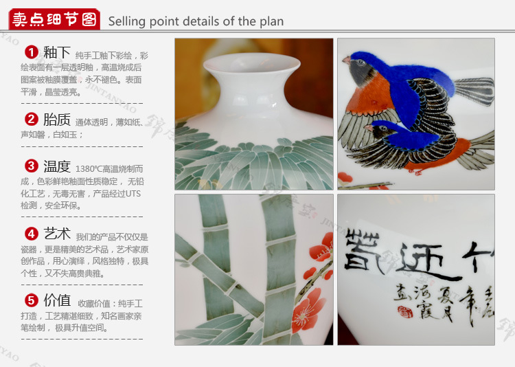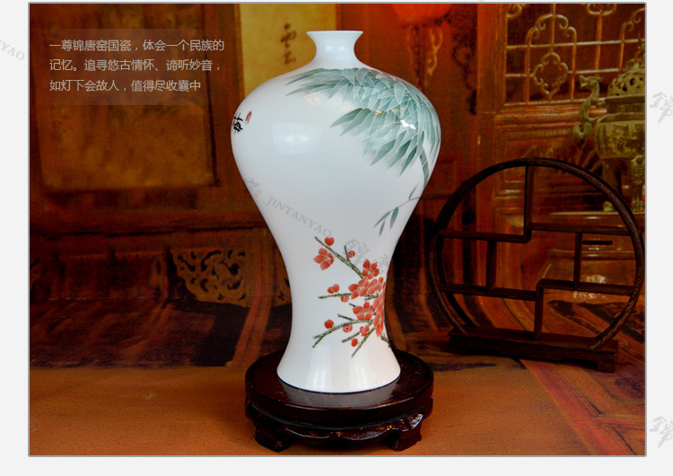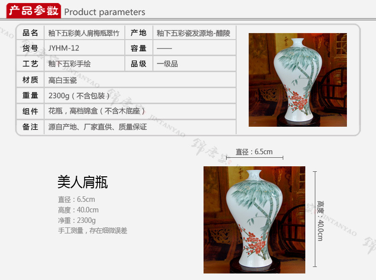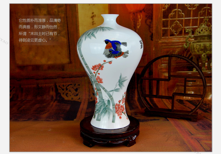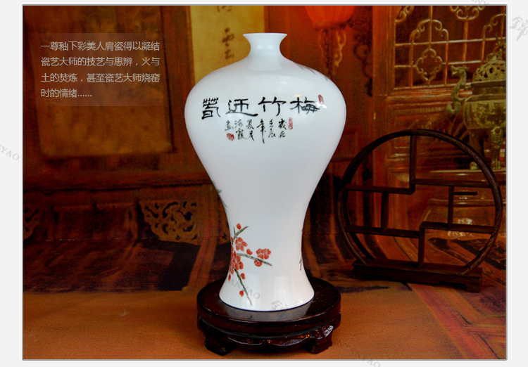 釉下五彩美人肩梅竹梅瓶 高档艺术品 高温醴陵釉下彩瓷花瓶批发