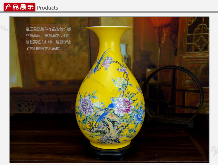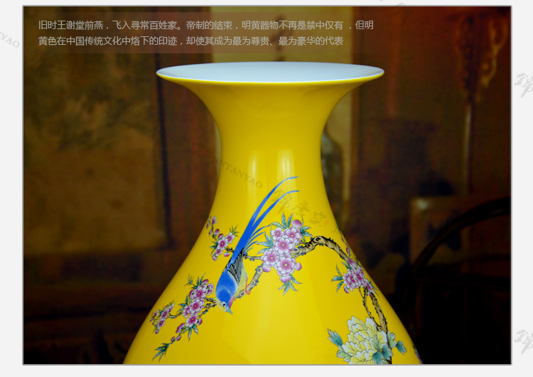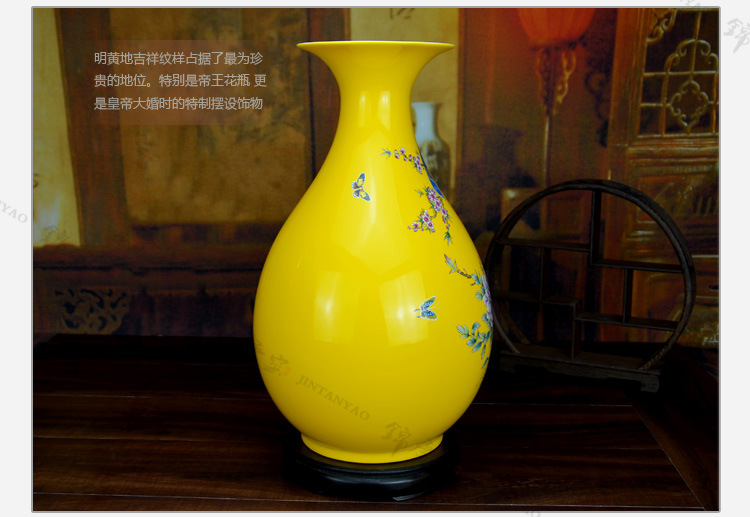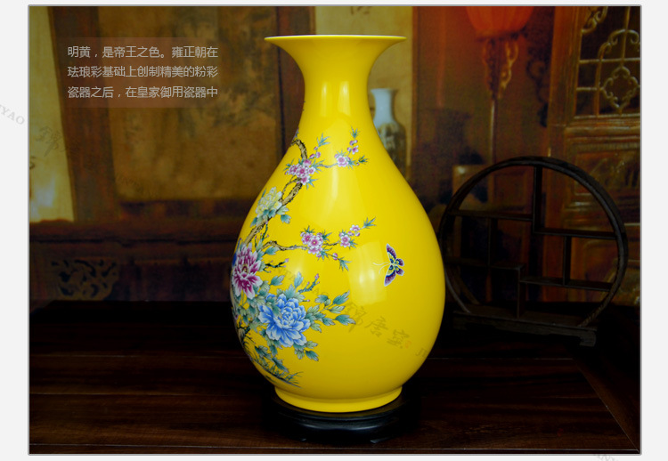帝王黄瓷锦上添花新玉壶春瓶 珐琅彩黄瓷花瓶 高档陶瓷花瓶 批发
