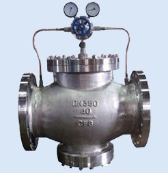 氧气减压阀由主阀和导阀两部分组成,属于先导活塞式减压阀。主阀主要由阀座、主阀盘、活塞、弹簧等零件组成,导阀主要由阀座、阀瓣、膜片、弹簧、调节弹簧等零件组成。通过调节调节弹簧压力设定出口压力、利用膜片传感出口压力变化,通过导阀启闭驱动活塞调节主阀节流部位过流面积的大小,实现减压稳压功能。