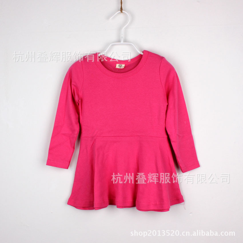 外贸童装童裙 春夏款纯色长袖拼接连衣裙 4色可选