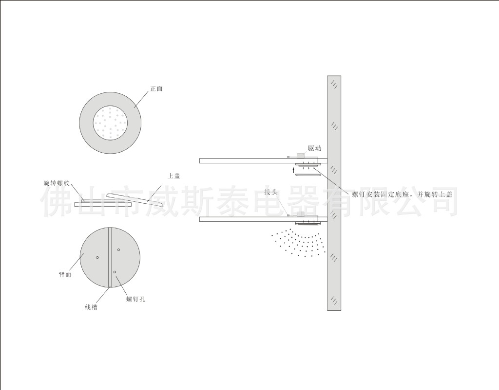 1 LED数量12PCS SMD 灯珠 2 圆形铝合金外壳高档美观,超薄外形,高亮度,发热是低,超长使用寿命