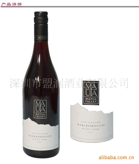 新西兰进口马腾山谷马博罗黑皮诺干红葡萄酒