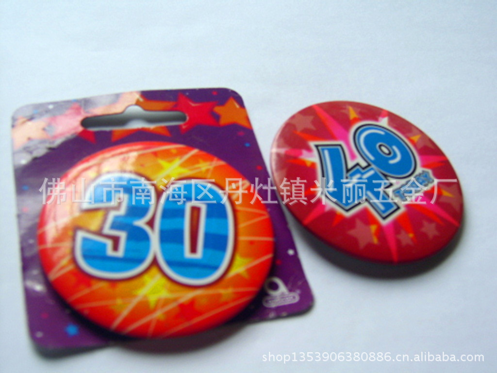 马口铁胸章是胸章的一种,产品材料为一级马口铁,表面包纸,背面有塑胶底和铁底两种供选择,配件为别针。有多种规格尺寸,广泛应用于食品、营养品、电子产品等产品促销,因为产品价格低廉。马口铁胸章也可以作为广告礼品,用作广告宣传、品牌推广、节庆纪念、促销礼品、商务馈赠等。