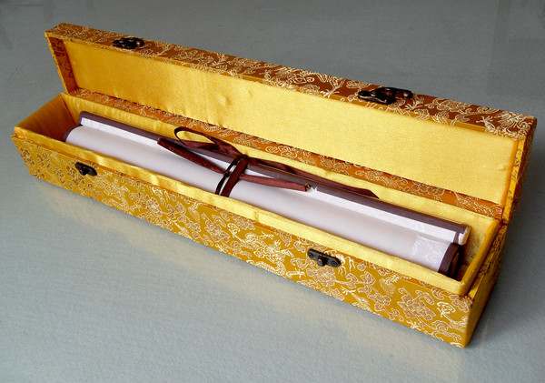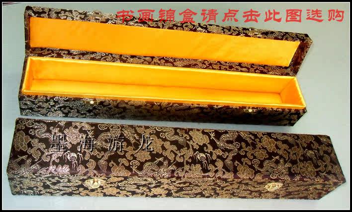 本品以密度板,外部锦缎贴合,盒内内托绸缎包海棉,精工细作而成,适合各种书画、挂轴、手卷、类似产品收纳。可根据您的需求订做,设计打样生产,尺寸任意。质量上乘,服务优良。