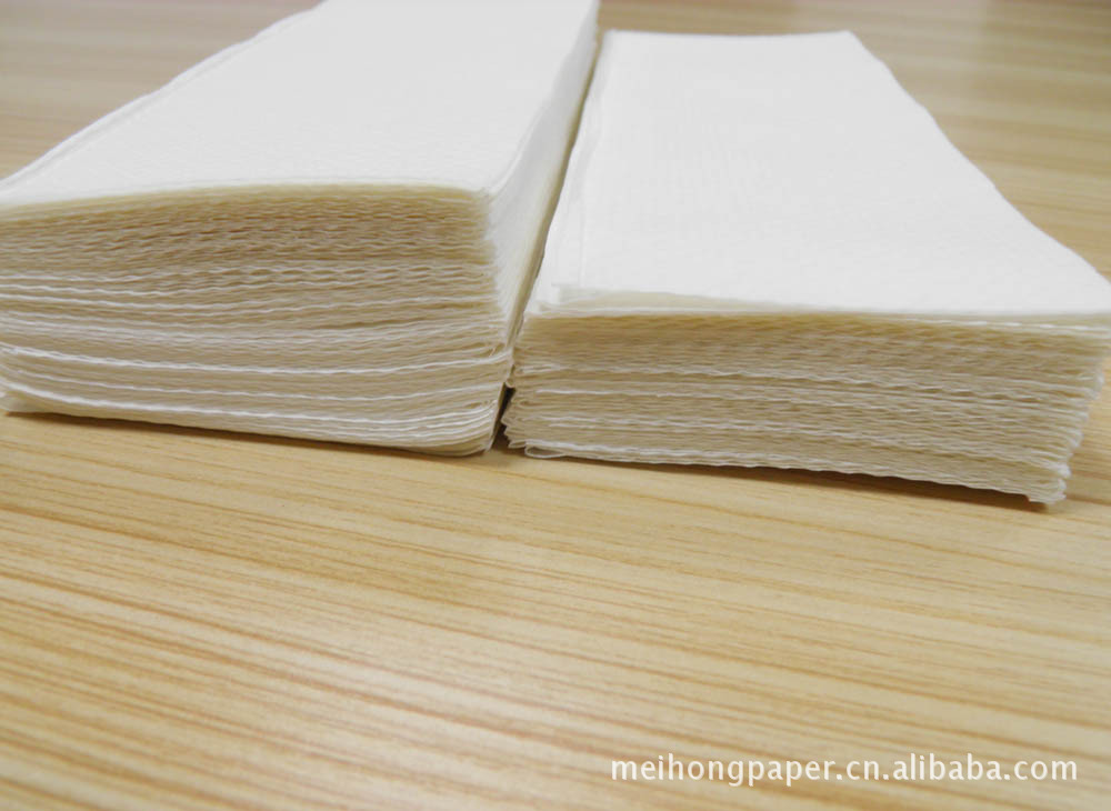 三折擦手纸是擦手纸中的一种,多用餐馆或酒店的卫生间内,供客人抹手用。