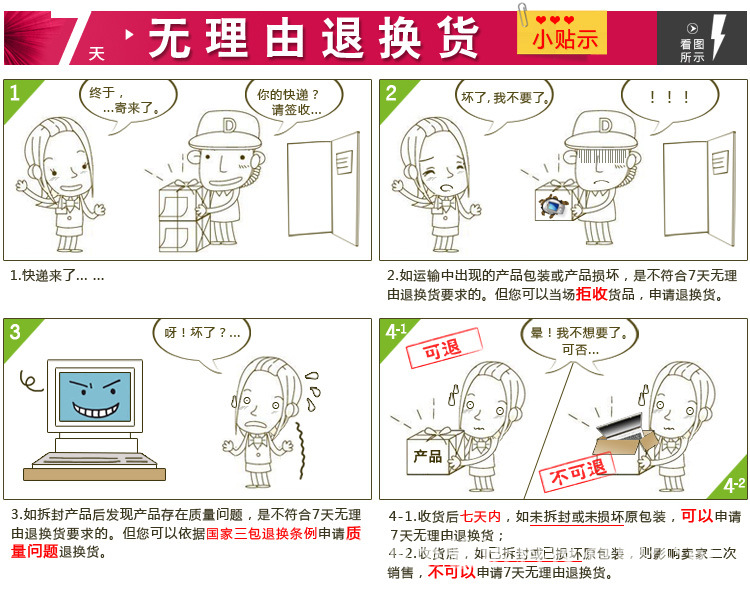 如果产品质量有问题,请第一时间在网上留言或者给我们电话,我们承担运费!