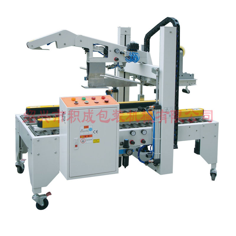 产品特性: ◎ 采用国际先进技术制造,并选用进口零部件、电气元 件及气动元件。 ◎ 根据纸箱规格,自动调节宽度及高度。 ◎ 自动折纸箱上盖,上下自动贴上胶带,快速,平整, 美观 ◎ 配装刀片防护装置,避免操作时意外刺伤。 ◎ 操作简单方便,可单机作业,也可与自动化包装流水 线配套使用。 | |