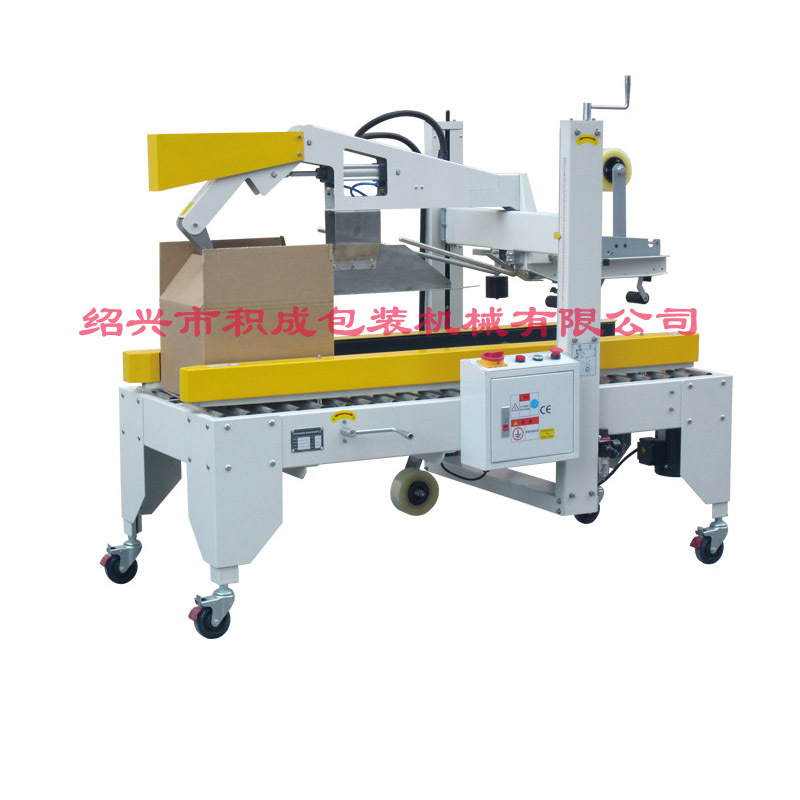 ◎ 本机设计以操作简单、经济耐用、安全、故障率最 低为主; ◎ 根据纸箱规格,手工调节机器宽度及高度,适合同 一 时段同种规格纸箱封箱 ◎ 纸箱经前段封箱机中间上下封口后,进入90度转角 机构,由推箱板推入角边封箱机构;纸箱上下四个 角边同是自动封口、抚平; ◎ 封箱美观、快速、节省人力、效率高; ◎ 配装刀片防护装置,避免操作时意外刺伤。 ◎ 该机可与GPA、GPB、GPC机型联机组合完成“H” 型封箱。 | |