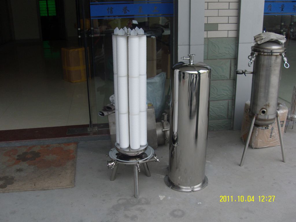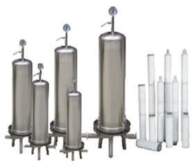 微孔膜筒式过滤器是国内外近年来才开发的新型过滤设备。它可以滤除液体、气体的0.1um以上的微粒和细菌,它有过滤精度高、过渡速度快、吸附少、无介质脱落、耐酸碱腐蚀、操作方便等优点。现已广泛用于医药、化工、电子、饮料、果酒、生化水处理、环保等工业的必需设备。