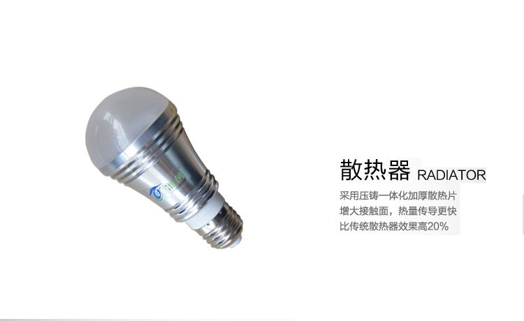 超低散热: | LED球泡灯属于固体冷光源,环氧树脂封装,发热量更小. |