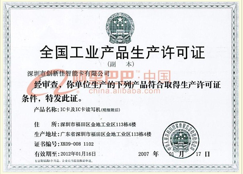 创新佳工厂地址:中国市广东省深圳市福田区金地工业区创新佳制卡厂113栋4楼-6楼