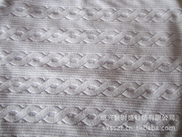 供应全涤螺旋状白色提花摇粒绒服装家纺面料