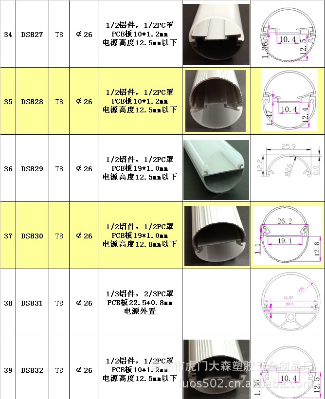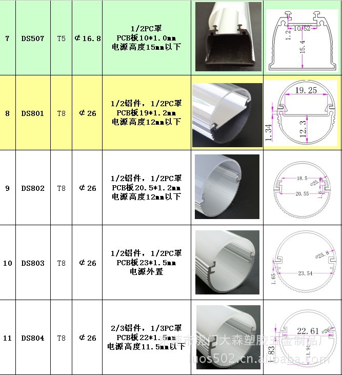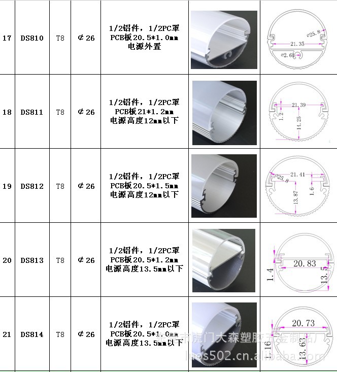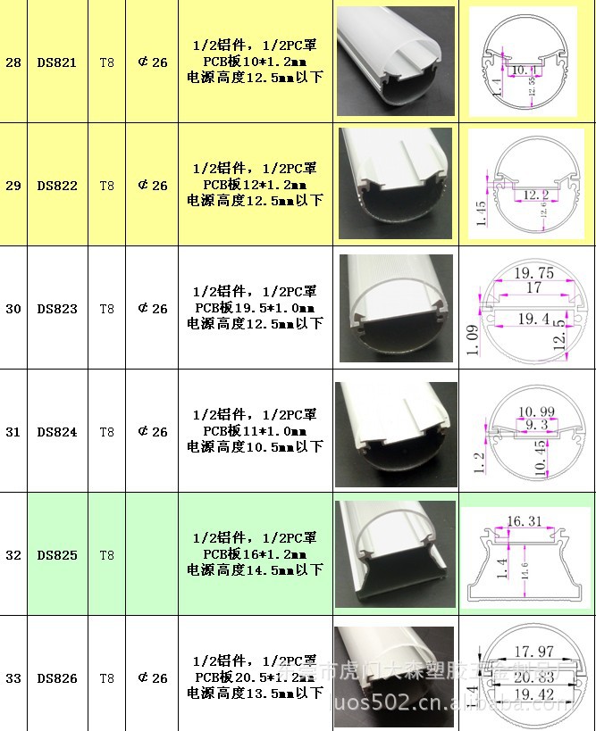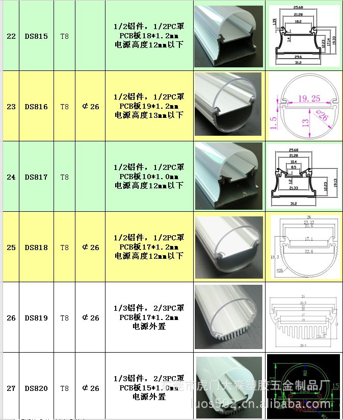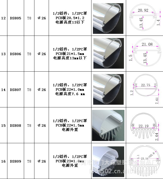 8.尺寸规格:外径26*1.0mm厚*13mm高,半圆弧形,配50%铝型管,通用级